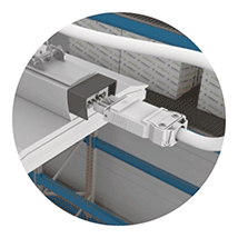 • Zentrale Energieversorgung über steckbare Flachleitung