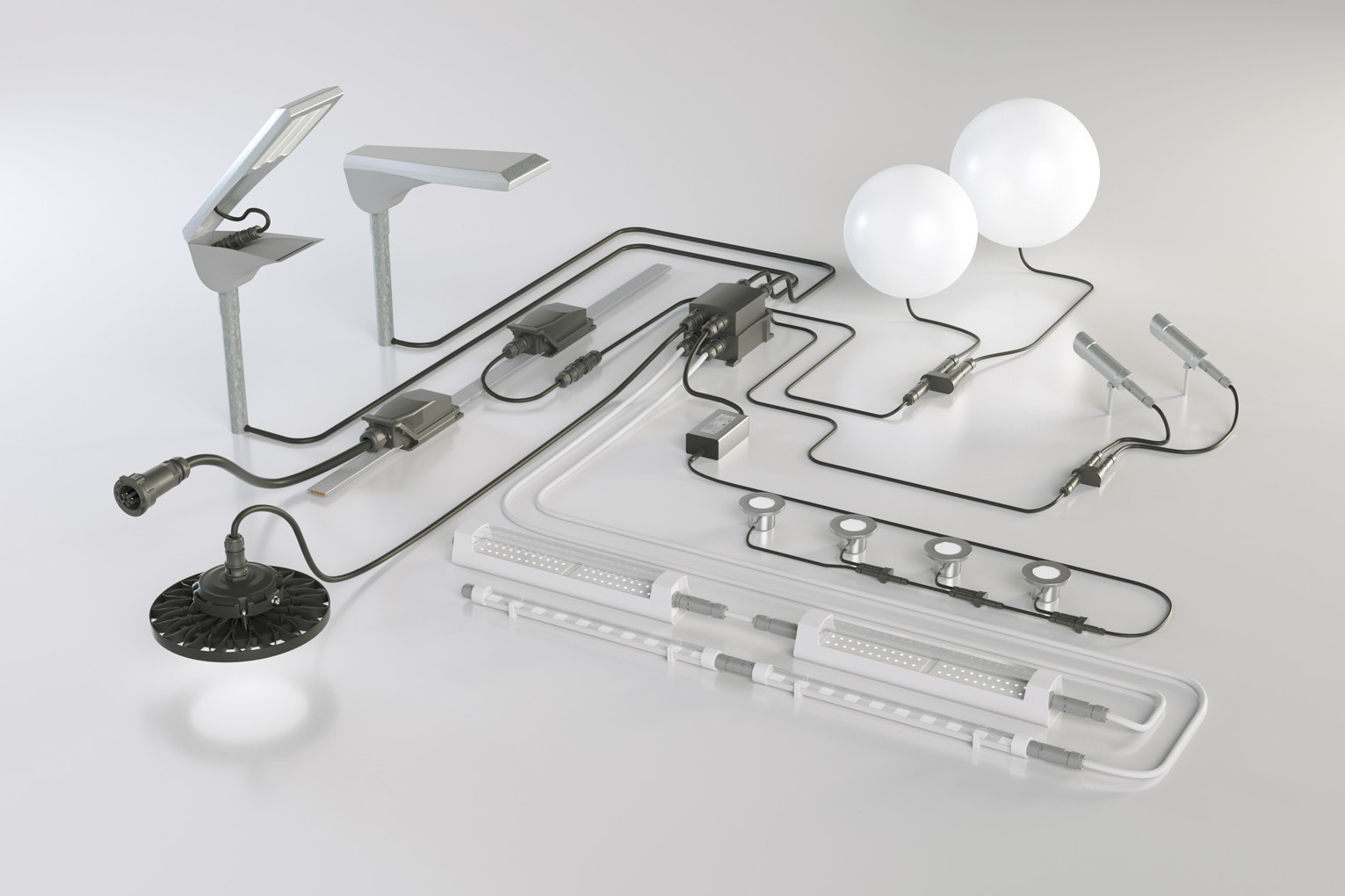 Komponenten zur Anbindung an Lichtsteuerungen oder Gebäudesysteme – steckbar und modular erweiterbar.