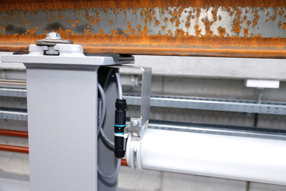 Die installierten Leuchten befinden sich in einer IP 67- geschützten Hülle. Diesen Schutzgrad sollten auch die Anschlüsse erfüllen. Zudem boten die bestehenden Stahlträger keine Befestigungsmöglichkeit für herkömmliche