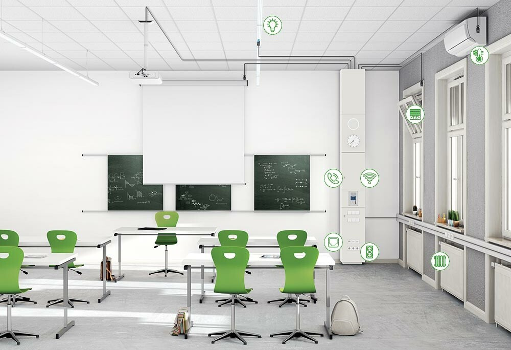 Einen Klassenraum schnell und einfach auf den neuesten Stand der Technik zu bringen, was Automatisierung und Datentechnik angeht, scheitert auf den ersten Blick oft am mangelnden Installationsraum.
