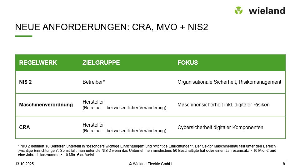 - Überblick über die Maschinenverordnung (MVO) und die Cyber Resilience Act (CRA)