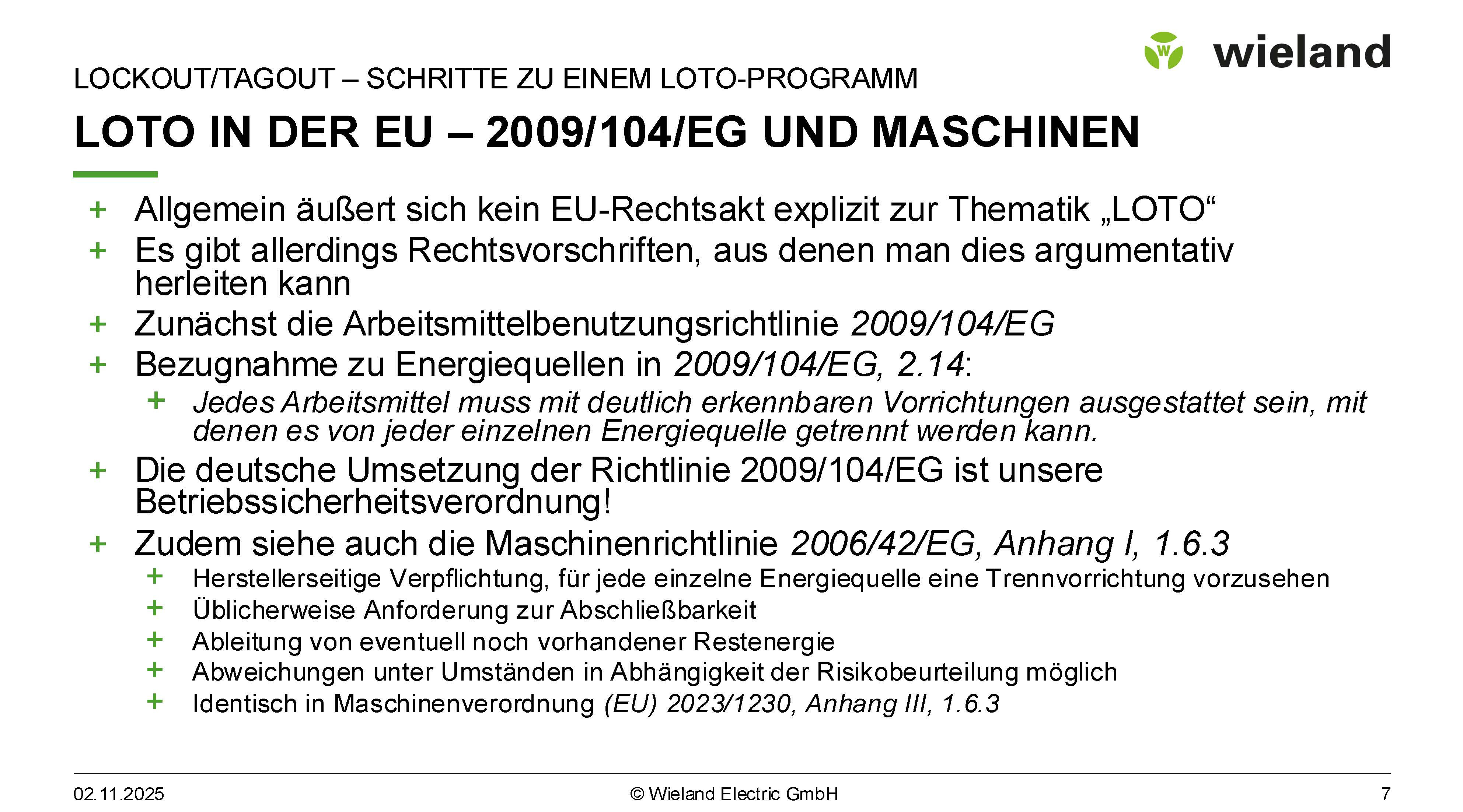 - Rechtliche Grundlagen zu Lockout/Tagout im Deutschland und der EU