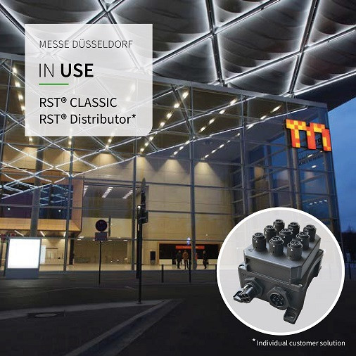 Each project has its specific requirements. In this case, the challenge was to combine all functionalities in a compact design. The solution demonstrates the perfect interplay of two RST® product families. RST® CLASSIC ensures the 5-pole power supply between the distribution points. In parallel, the dimming signal runs via the 2-pole RST® MINI. The star-shaped distribution is handled by a 5-pole RST® MINI connector, which supplies the symmetrically distributed phases in the distributor in combination with the dimming signal to the light. All coded! Misconnection is impossible. Lastly, Wieland Electric terminal blocks within the distributor round off the perfect interplay of our products.