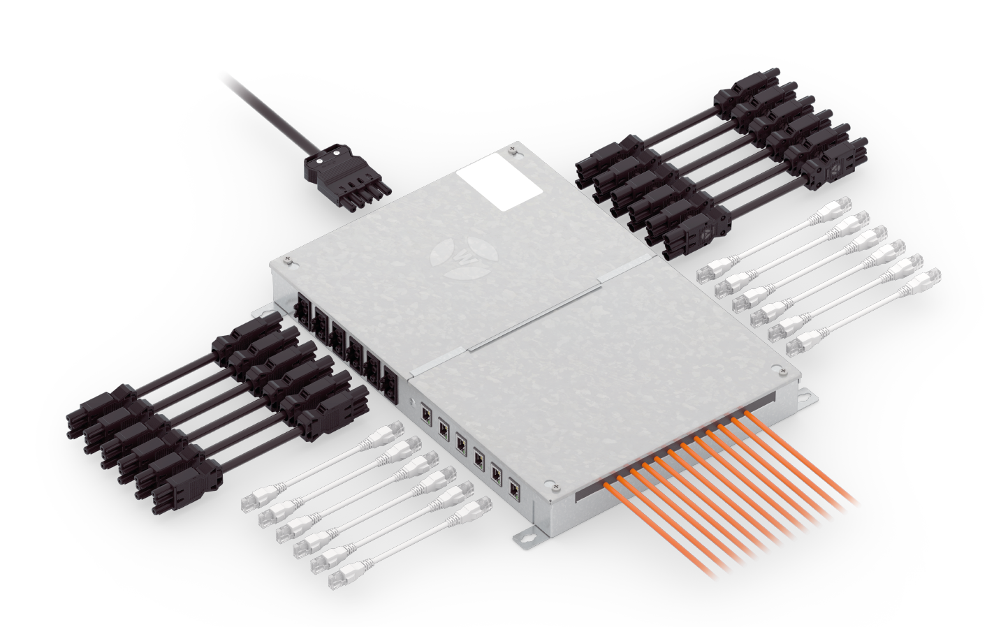 Desk sharing, flexible working and co-working ... the office of the future must be adaptable to all of these. With our Consolidation Points we offer you transition-point connectivity that allows the majority of horizontal cabling to remain untouched while providing flexibility to adjust floorplans and use modular office furniture as needed. Power and network connections are done through Plug & Play connectors which further enhance the flexibility and modularity of your space.