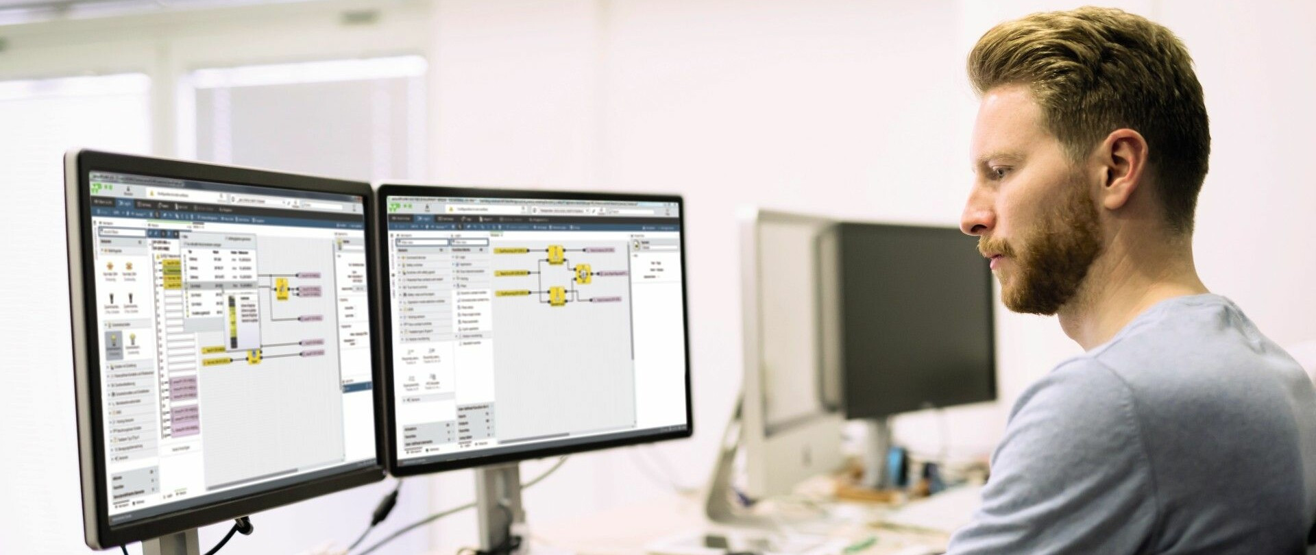 In accordance with EN ISO 13849, we implement the safety functions for you in the user software with samos® PLAN 6. In this way, we ensure error-free software for the smooth commissioning of your machine.